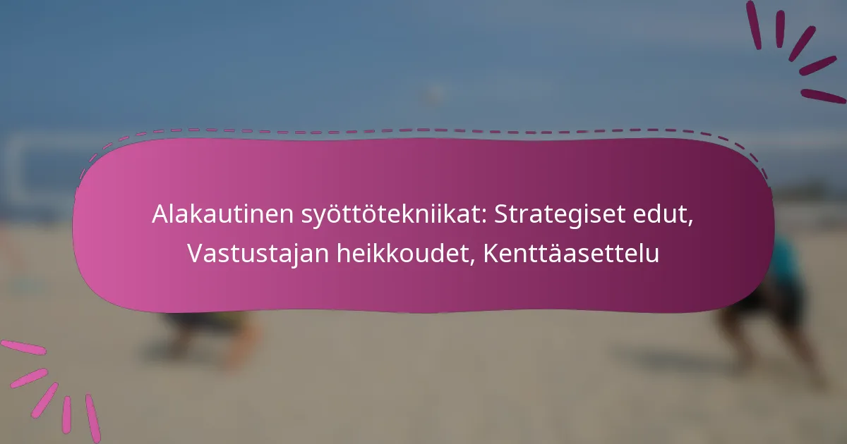 Alakautinen syöttö on strateginen tekniikka, joka voi yllättää vastustajat, ja se perustuu keskeisiin komponentteihin, kuten otteeseen, käden asentoon ja jalkatyöhön. Analysoimalla videomateriaaleja pelaajat voivat saada arvokkaita oivalluksia onnistuneiden syöttöjen vivahteista, mikä parantaa heidän kykyään toistaa tehokkaita liikkeitä. Monet ammattilaispelaajat ovat käyttäneet tätä syöttöä tehokkaasti luodakseen taktisia etuja, mikä tekee siitä arvokkaan taidon hallita kilpailullisessa pelissä.