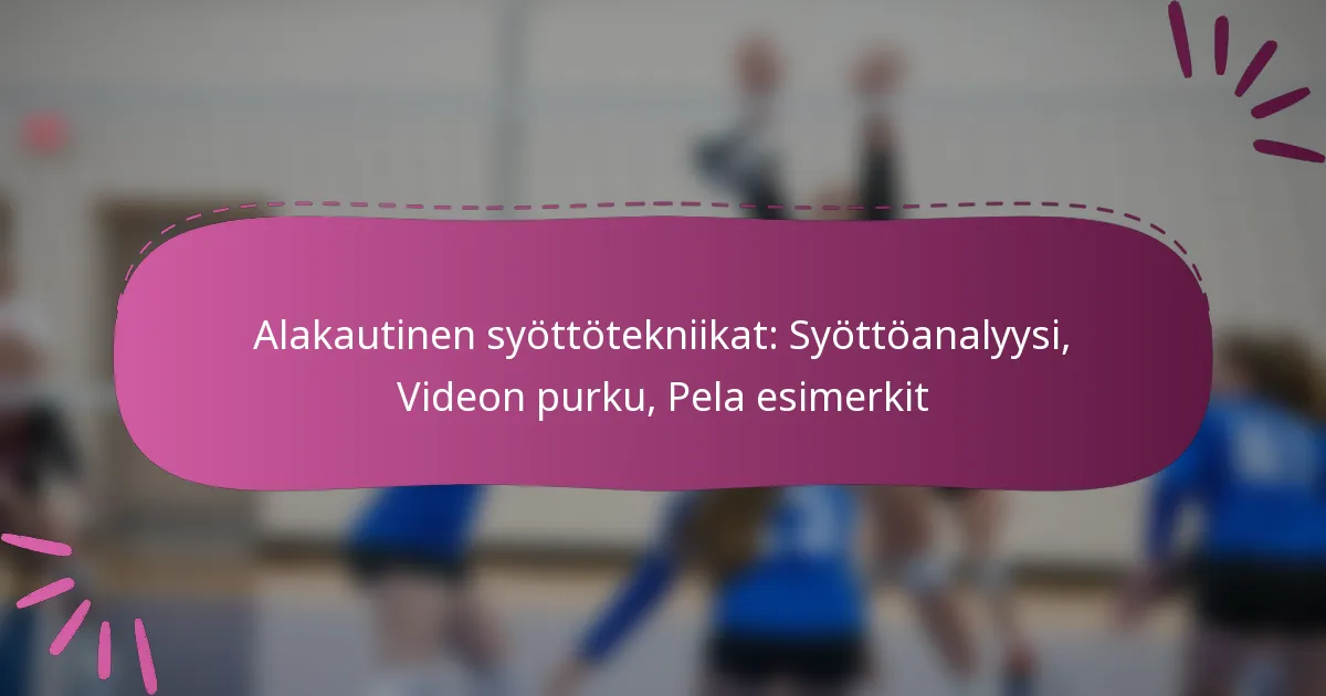 Videomateriaalit parantavat merkittävästi ymmärrystä alakautisesta syötöstä tarjoamalla visuaalisia esimerkkejä, jotka korostavat keskeisiä tekniikoita ja strategioita. Analysoimalla kuvamateriaalia pelaajat voivat havaita onnistuneiden syöttöjen vivahteet, mikä helpottaa tehokkaiden liikkeiden toistamista ja parantaa kokonaisvaltaista suoritusta.